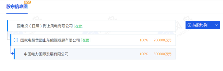 股权穿透显示,该公司由国家电投旗下中国电力国际发展有限公司100%持股。
